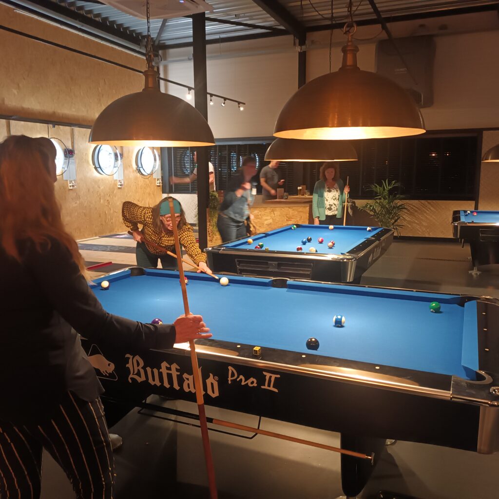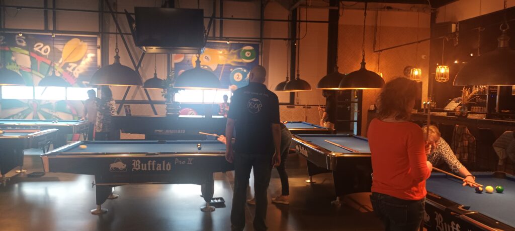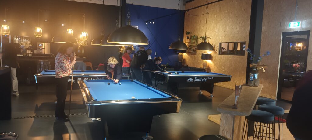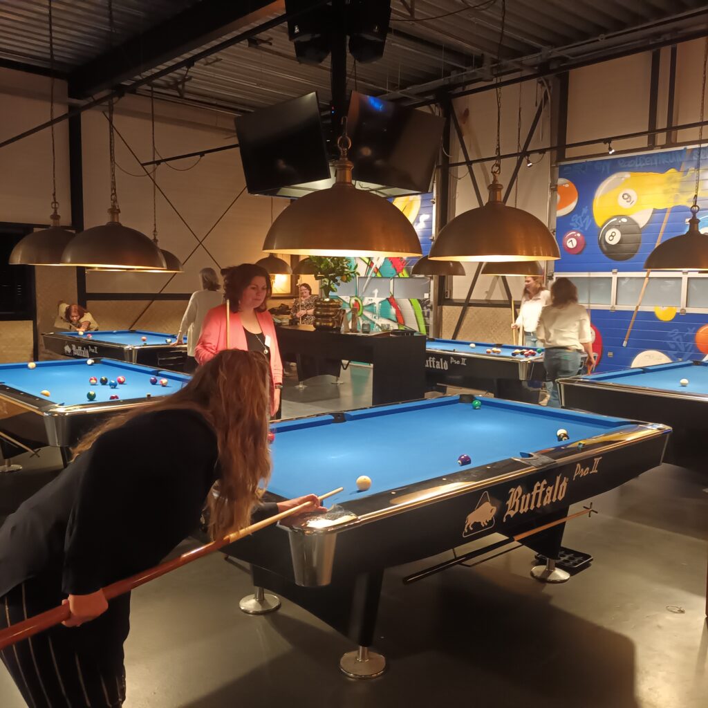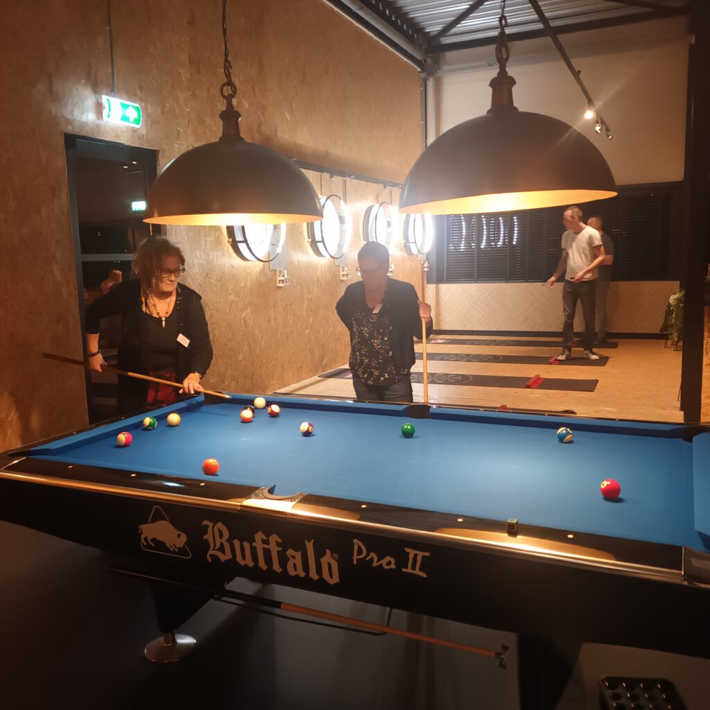 Hieronder foto’s van de locatie en onze poolbiljartsters!