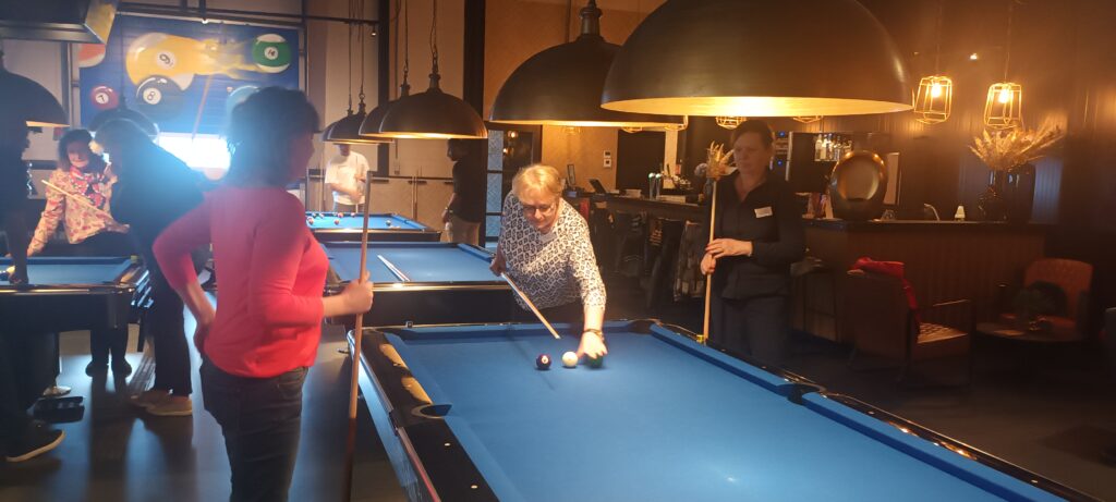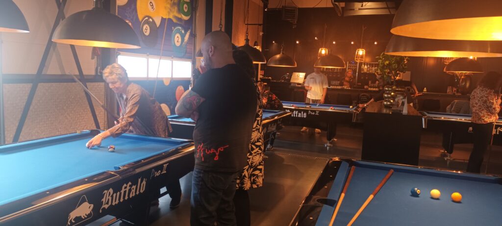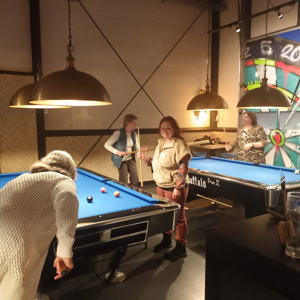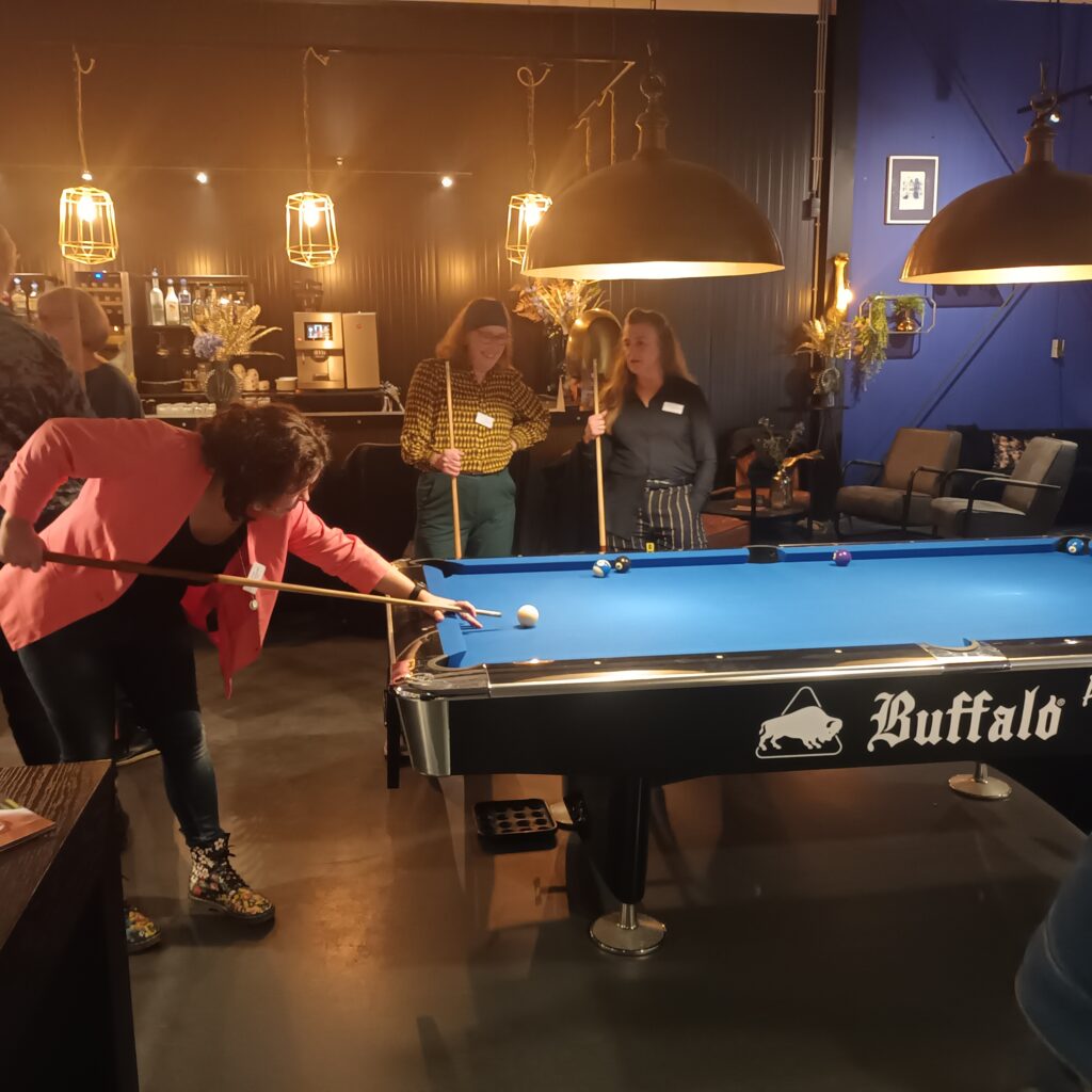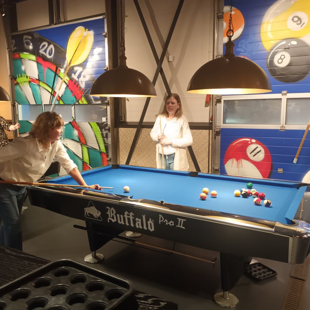 Hieronder foto’s van de locatie en onze poolbiljartsters!